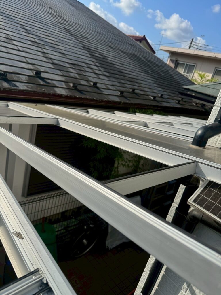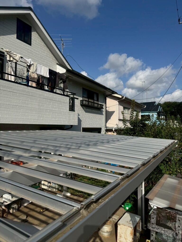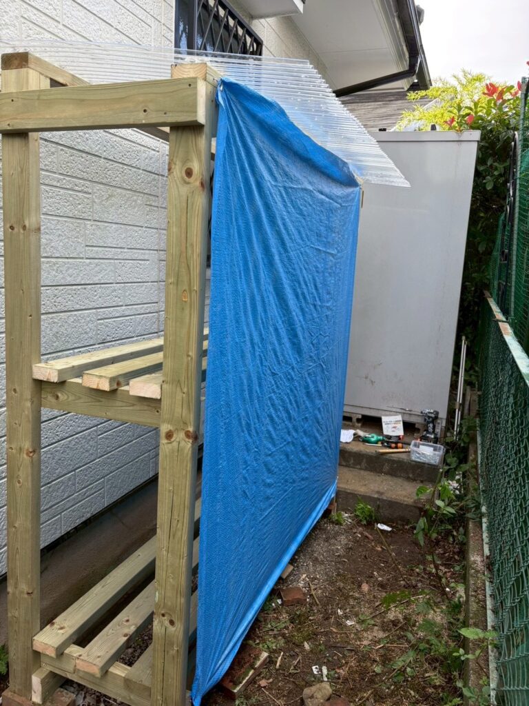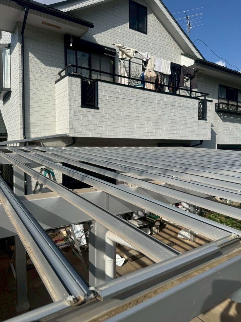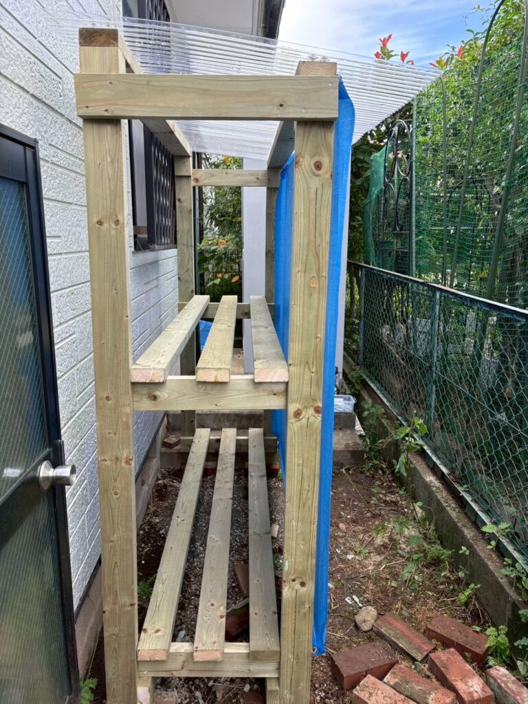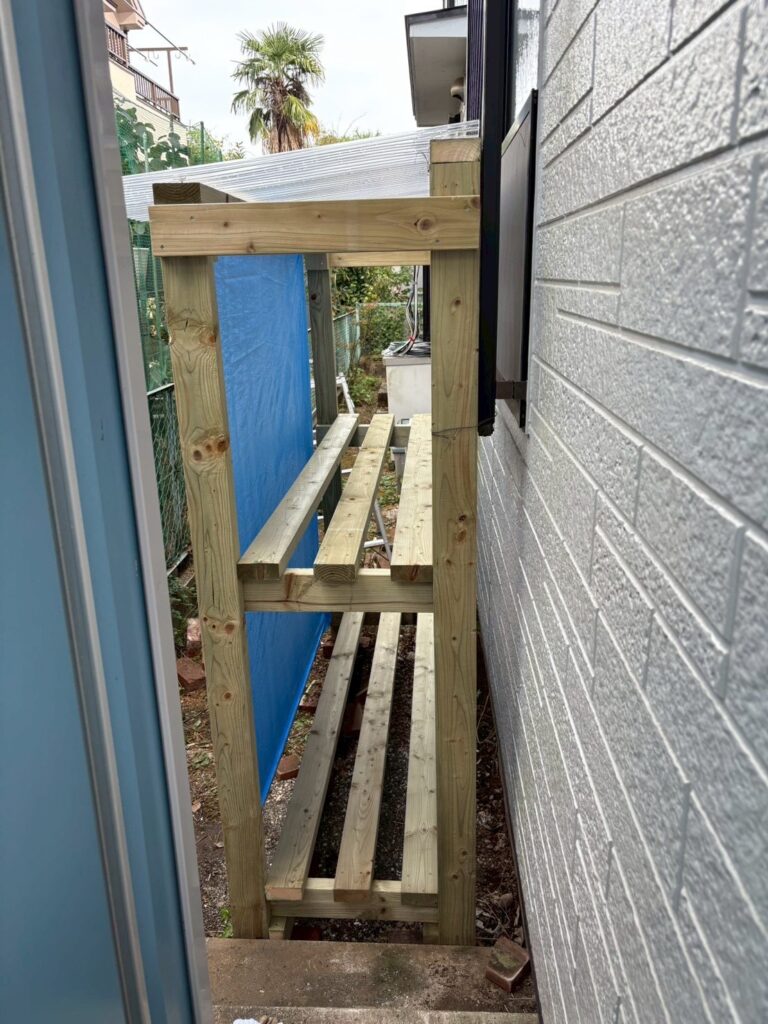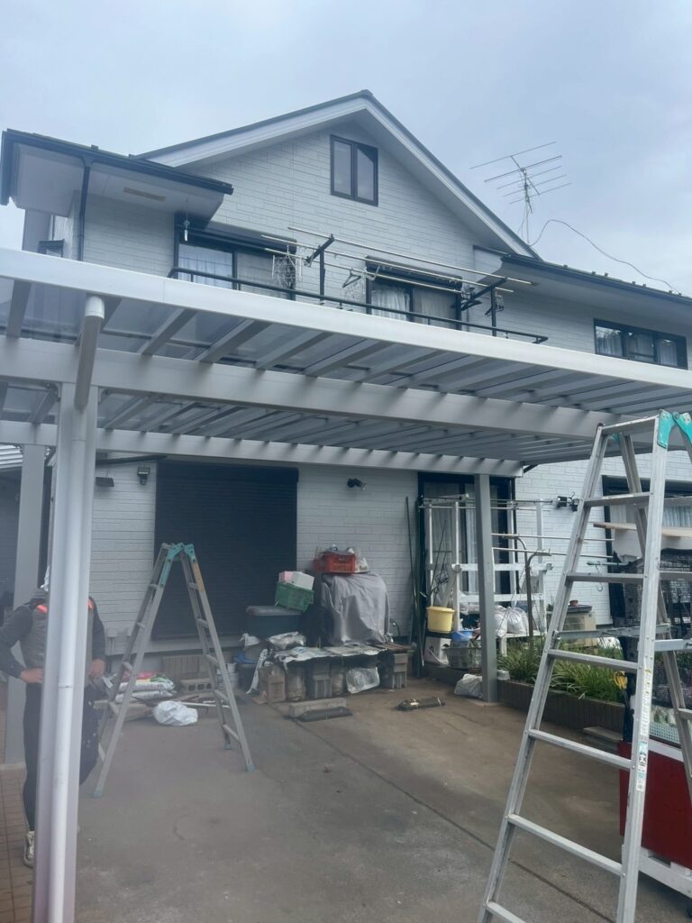 今回は足場工事に伴うカーポート脱着と棚の新設工事を行ないました。