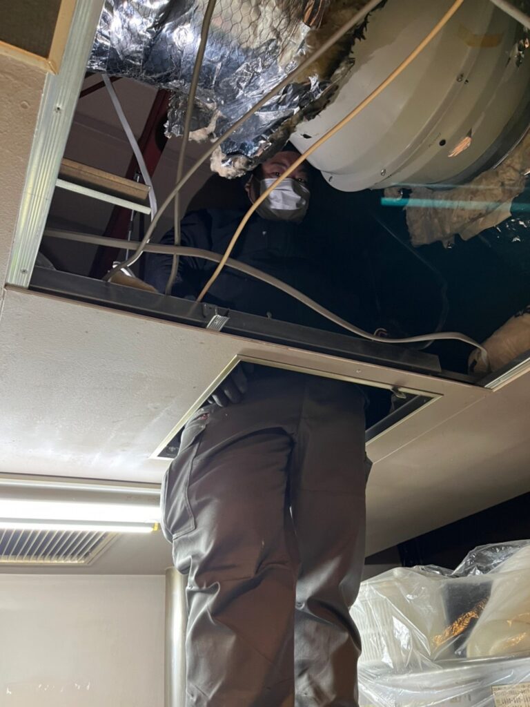 今回は飲食店の厨房換気設備のダクトファンの交換工事を行いました。