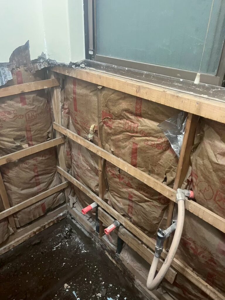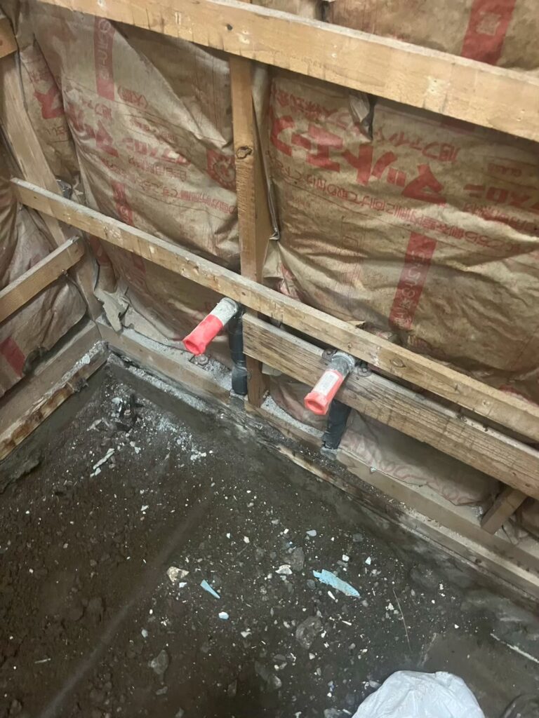 まずは既存のバランス釜や浴槽、タイルなどをすべて撤去し、配管や下地の状態を確認しながら作業を進めていきます。