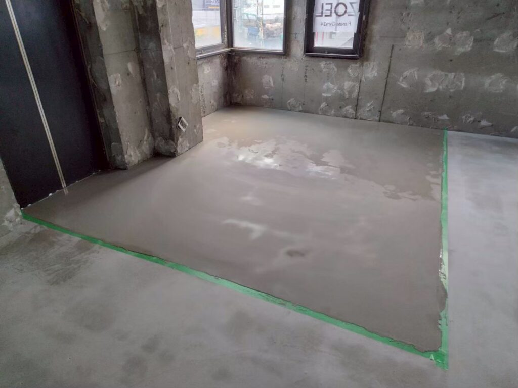 リベラーとは、床に流し込んで表面を平らに整える下地調整材のことで、セルフレベリング材とも呼ばれます。液状の材料が自然に広がり、デコボコした床面をなめらかで水平に近い状態へ整えてくれます。