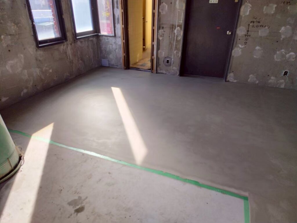 まずは床面にデコボコや高さのばらつきがあったため、リベラー施工から作業を開始しました。