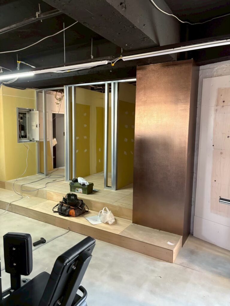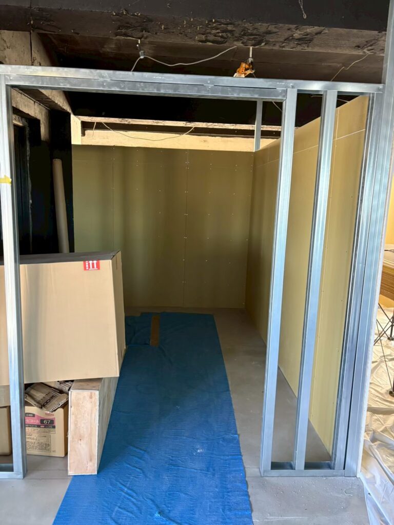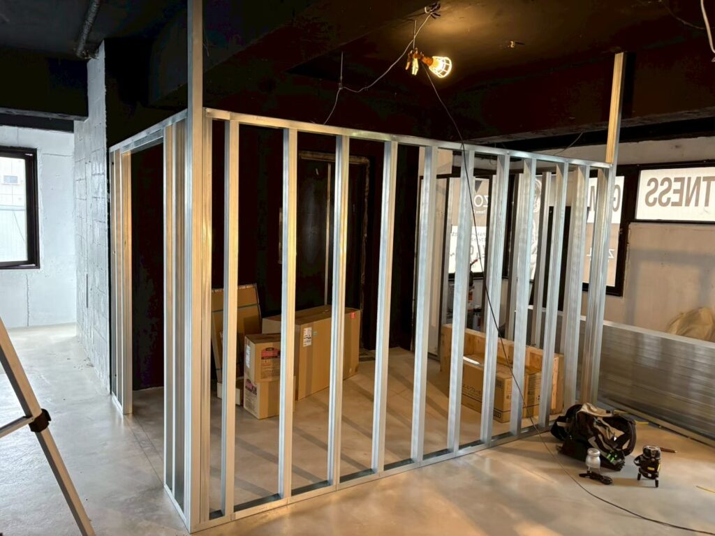 その後、使いやすさや動線も考慮しながら間仕切りを施工し、ジムとして機能的なレイアウトを一つひとつ形にしていきます。