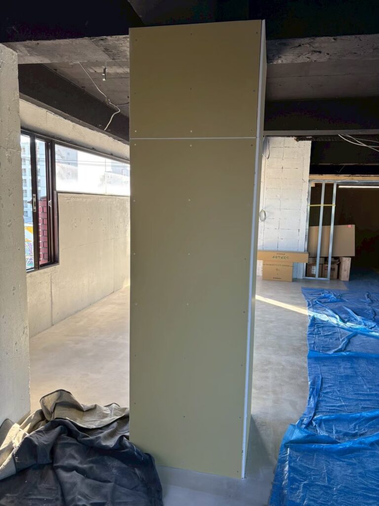 今回の現場はスケルトン状態からのスタートとなり、何もない空間から一つひとつ形にしていく大規模な施工でした。