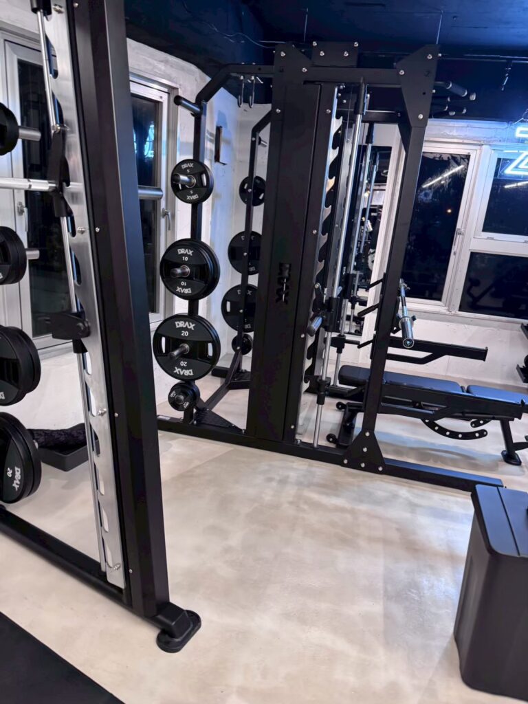 内装工事・壁・天井の施工を終え、フィットネスジムで使用する各種機材の搬入・設置まで完了し、無事に完工となりました✨