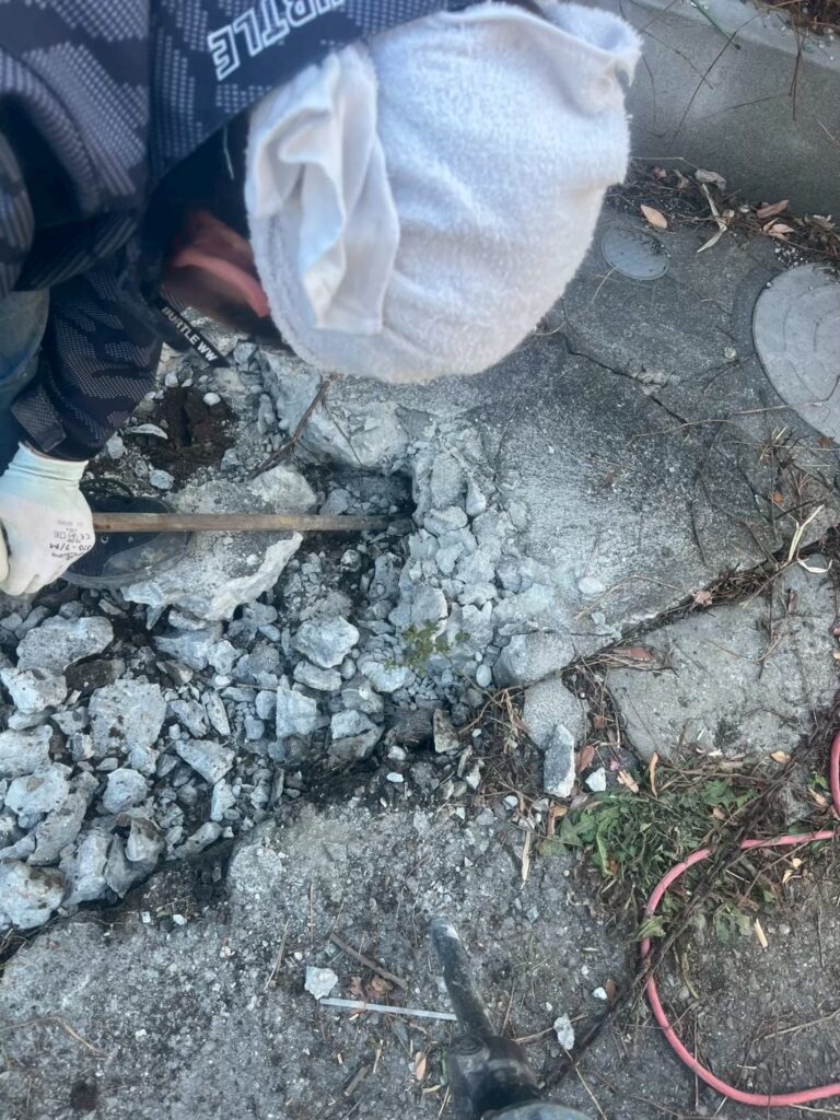 今回のコンクリートは劣化が進み、全体的に強度が落ちてボロボロの状態だったため、周囲への影響や下地を傷めないよう、慎重に手作業で解体を進めていきます。