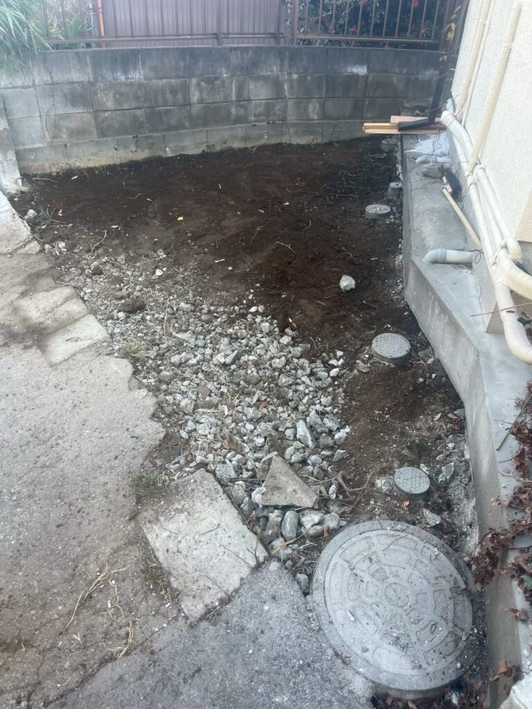 日常の出入りにも支障があり、つまずきや転倒のリスクもあるため、安全性を確保するための施工となります。
