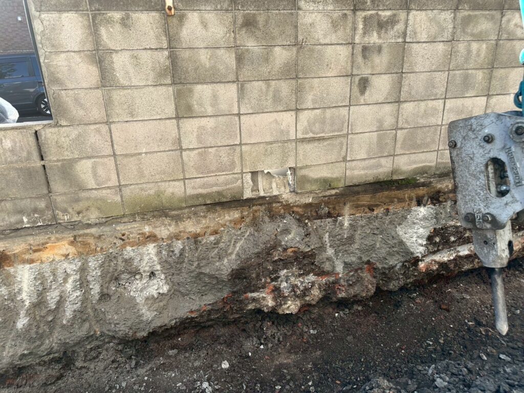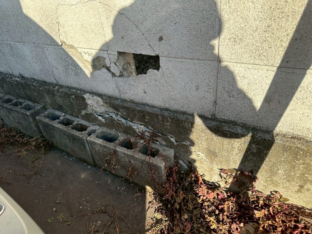 今回は、重機作業中に外壁のブロック塀を破損してしまった為、補修工事のご依頼をいただきました。