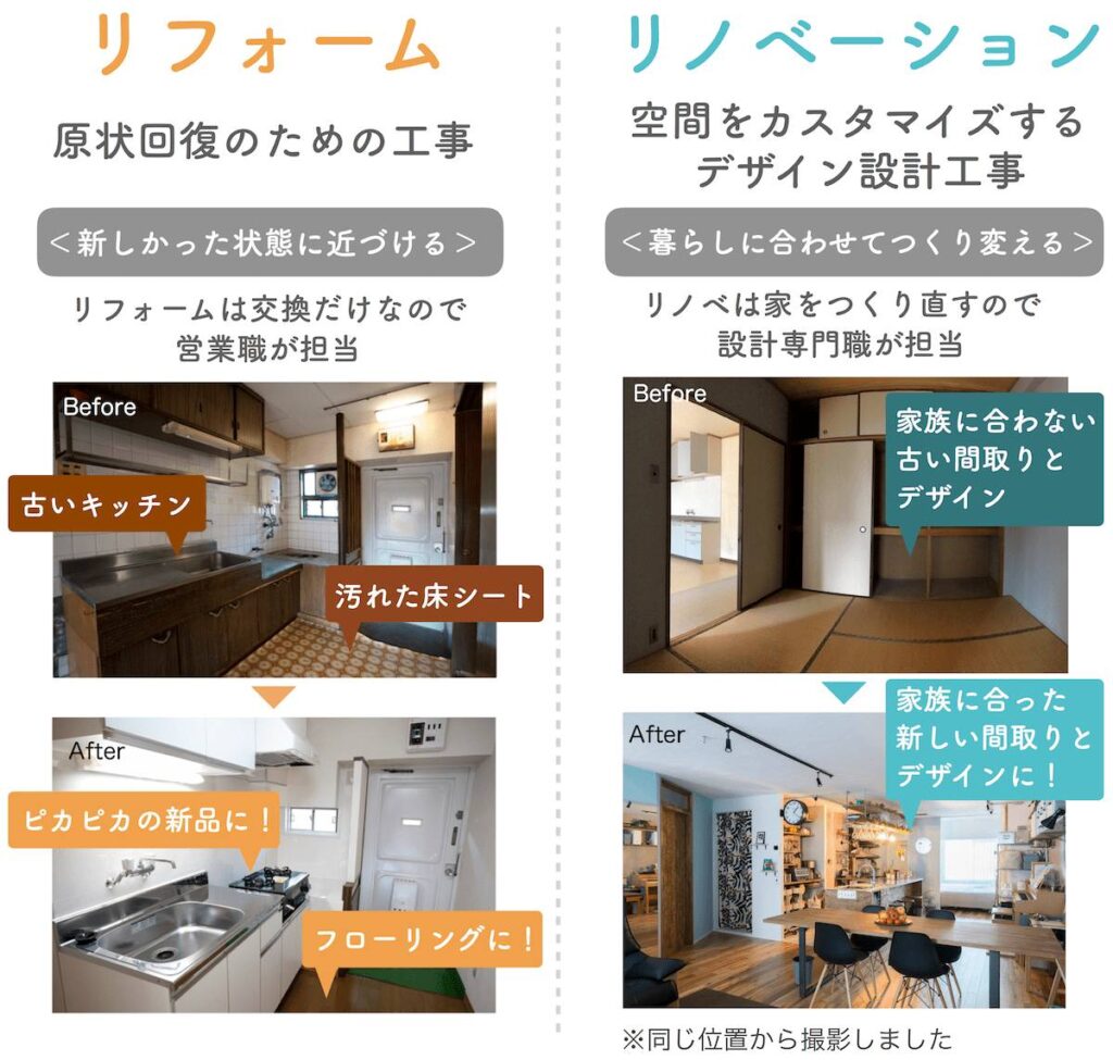 リフォームとリノベーションの違いについて、今回はわかりやすくご紹介いたします。